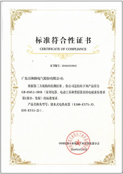 按现行CCC管理规则,电热水器的EMC不属于认证管辖范围,换言之,产品是否满足EMC要求不影响获得CCC认证。与此同时,现行EMC国家标准均为强制性标准,按照相关法规,即使未纳入CCC认证要求范围,产品仍然必须符合EMC标准要求。本次GB 4343.1-2018 标准符合性测评是以自愿送检为原则,华体会(中国)公司积极参加了这次测评活动,由于该版标准计划在两年后实施,而且比现行标准要求更全面、更严格,因此意味华体会(中国)的这些产品已经提前两年符合更高的标准要求,既体现了公司对产品质量提升的强烈意识,也体现了公司满足更高质量要求的技术能力。本次华体会(中国)的电热水器首批获得GB4343.1-2018“标准符合性证书”这一殊荣,证明华体会(中国)的产品满足广大消费者对创新产品质量的需求,是值得消费者信赖和选购的产品,有力推动了产品品质升级。
