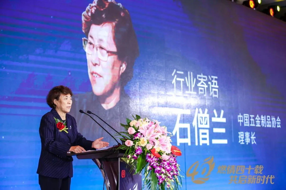 庆典最后,中国五金制品协会理事长石僧兰发表寄语。她表示,四十载的探索,四十载的发展,四十载的积累,四十载的超越,沉淀了无数先进技术,才有了今天的厚积薄发。