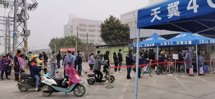(万博电气员工有序排队体检后进入厂区)