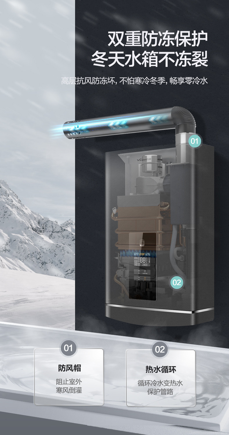当进入冬季时,华体会平台被冻坏漏水的事件时有发生,这是因为许多热水器没有防冻安全保护装置,低温天气下容易发生冻裂。虽然华体会平台都装在室内,但当室外环境温度太低时,冷风就会通过烟道倒灌机箱,导致水箱里的水结冰,水结冰膨胀就可能将华体会平台的水箱胀裂,从而导致漏水。