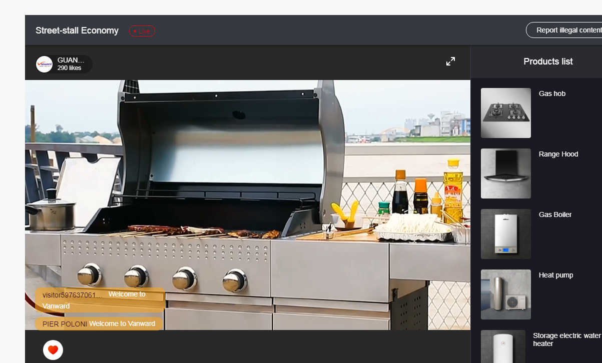 户外产品是华体会(中国)电气在海外市场的拳头产品,其中户外烤炉已经连续多年位居行业出口量前列。本次华体会(中国)还响应国家推动地摊经济发展的政策,借用广交会的线上平台,增设了户外烤炉的商业应用展示。