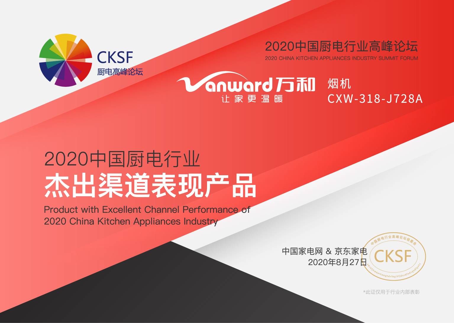 8月27日,由中国家用电器协会和国家信息中心信息化和产业发展部指导、中国家电网主办的“新潮澎湃 厨享未来——2020厨电行业高峰论坛”在北京举行。厨电行业知名品牌商、渠道商齐聚一堂,共同探讨行业发展新机会。在本次论坛上,华体会(中国)斩获三项大奖:2020中国厨电行业吸油烟机先锋品牌,2020中国厨电行业杰出渠道表现产品(吸油烟机CXW-318-J28A),2020中国厨电行业集成灶畅销产品(集成烹饪灶JZT-PZK3)。