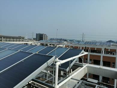 已交付使用的容桂外国语学校多能源集成热水系统。