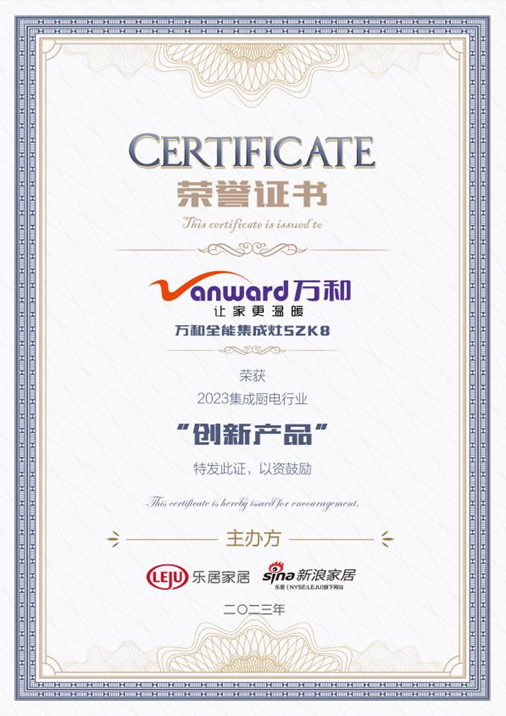 全能集成灶SZK8被评为2023集成厨电行业“创新产品”