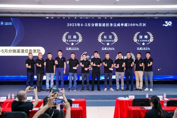 此外,在本次发布会上还对4-5月渠道分销及终端促销达成指标的销售片区进行了表彰,赖育文总裁为达标的销售片区经理颁发了现金大奖,国内营销中心总经理段晋星为优秀导购颁发了旅游名额奖励。