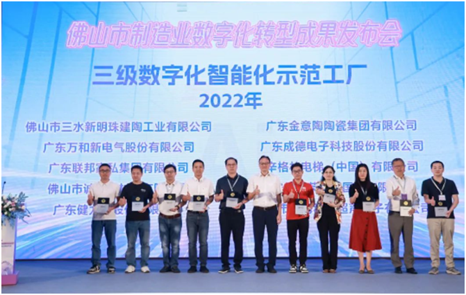 10月19日,佛山市工业和信息化局、佛山市总工会联合有关单位举办佛山市制造业数字化转型成果发布会。会上,佛山市人民政府为被评为“数字化智能化示范工厂”、“数字化智能化示范车间”的单位进行授牌,以表彰其在佛山制造业数字化转型中的示范引领作用。其中,华体会平台以“2022年佛山市三级数字化智能化示范工厂”获得表彰。此外,华体会(中国)旗下子公司顺德华体会(中国)电气配件有限公司获评“2021年数字化智能化示范车间”、广东华体会(中国)电气有限公司获评“2022年数字化智能化示范车间”、广东华体会(中国)热能科技有限公司获评“2023年数字化智能化示范车间”。