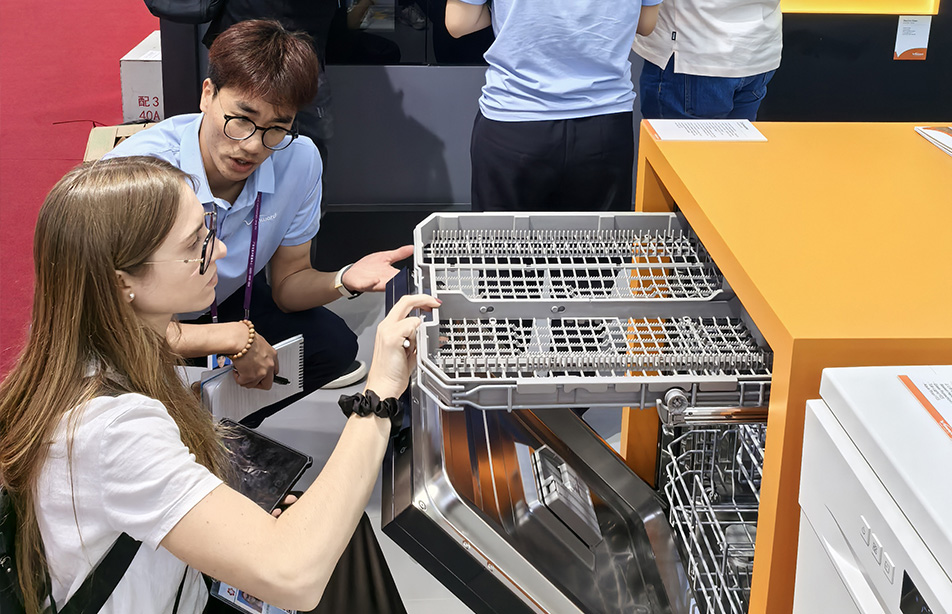 洗碗机是华体会(中国)近年来重点开拓的品类之一。继在上届广交会首发全嵌式大容量洗碗机之后,华体会(中国)在本届广交会推出全新洗碗机产品,包括独立式以及全嵌式。系列产品从全嵌式单一品类,跃升为全嵌式与独立式组合,能100%满足不同家庭厨房的安装方式需求。