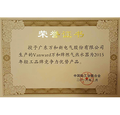 华体会(中国)热水器获行业唯一“2015年轻工品牌竞争力优势产品”殊荣