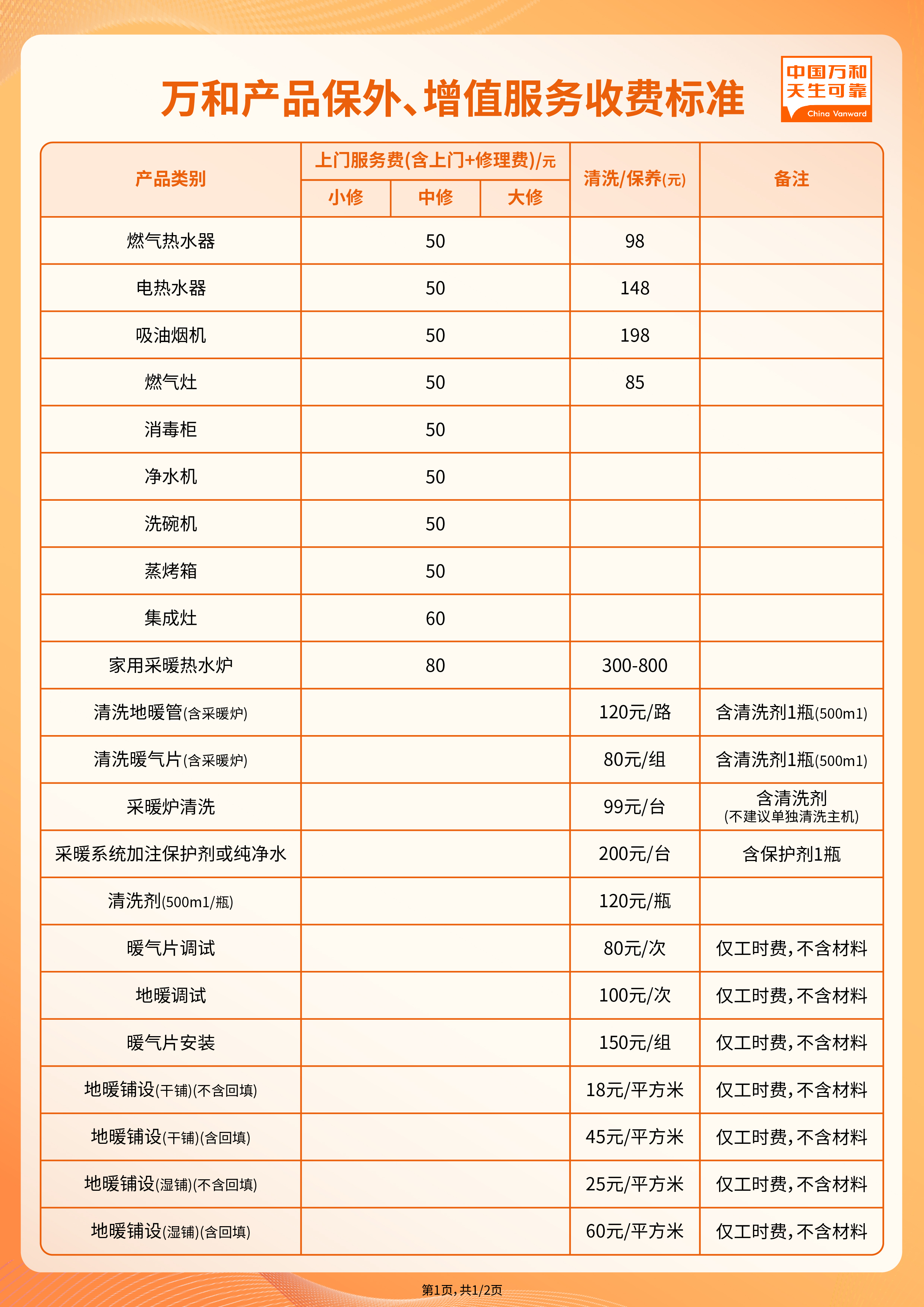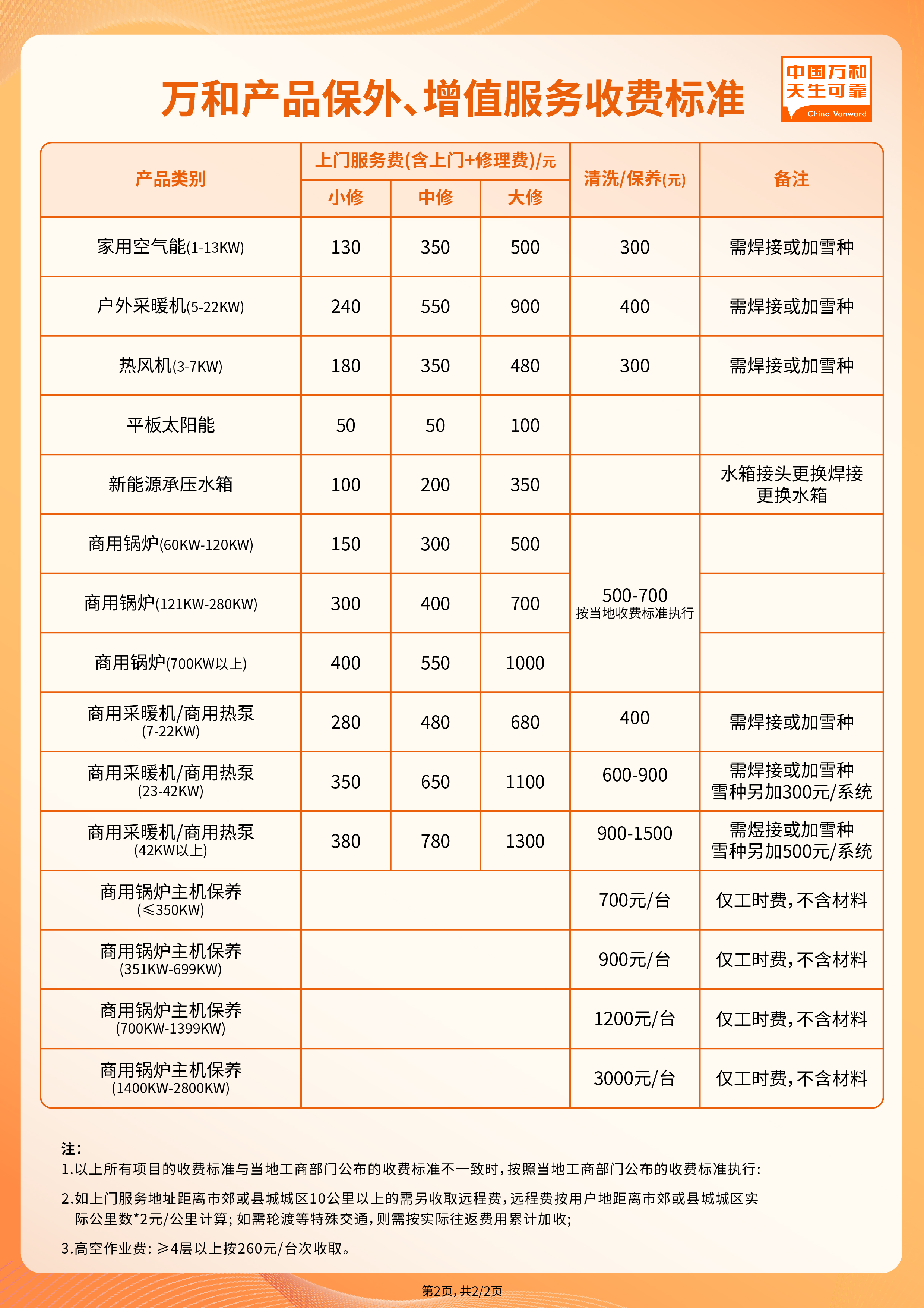 二、华体会(中国)产品保外服务管理及收费标准