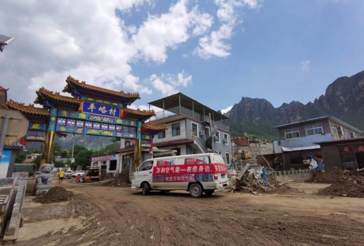 8月13日,华体会(中国)新能源事业部委派销售部、市场部,联合华体会(中国)空气能北京市房山代理商,采购了一部分生活物资,包括消毒液、饮用水、食品等,派出专车送达房山区十渡镇,直接派发到受灾严重的部分村落村民手中。