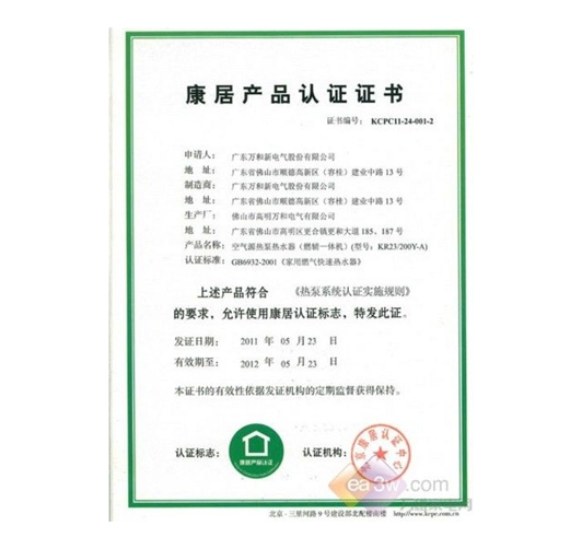 华体会(中国)新能源热水器喜获建设部“康居产品认证”