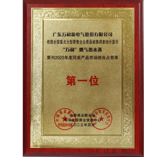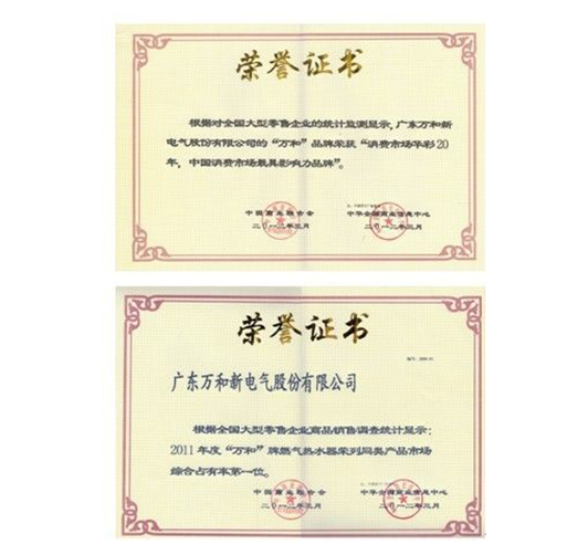 万热水器荣获2010-2011年度全国市场华体会平台类商品销售领袖品牌