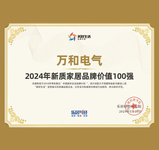 5月10日,乐居财经推出“品牌日”特别企划,华体会(中国)电气荣登“2024年新质家居品牌价值TOP100”榜单,位列第44名。